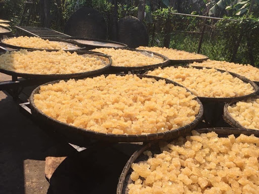 Đường phèn Quảng Ngãi là đường tinh được kết tinh vào sợi chỉ dạng long lanh như thủy tinh. Đường phèn được làm từ đường mía hoặc đường trắng tinh luyên nhà máy kết hợp với nước củ cải đường, lúa miếng ngọt… Cách kết hợp và tỉ lệ tùy thuộc vào kinh nghiệm của nghệ nhân nấu đường. 50k/hũ 500gram